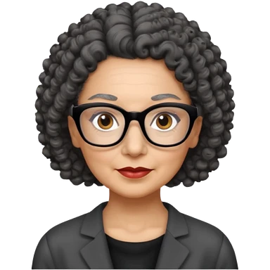 50 years old woman, curly hair, brown eyes and rectangle glasses emoji | AI Emoji Generator
