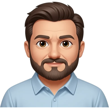55 year old man, dark brown hair, mustache & beard, slightly overweight, brown eyes emoji