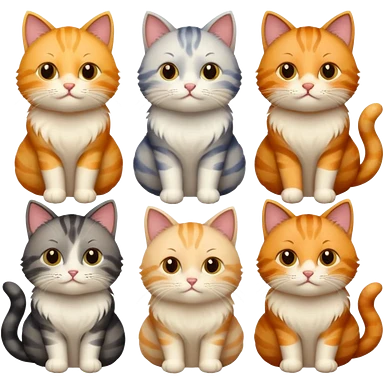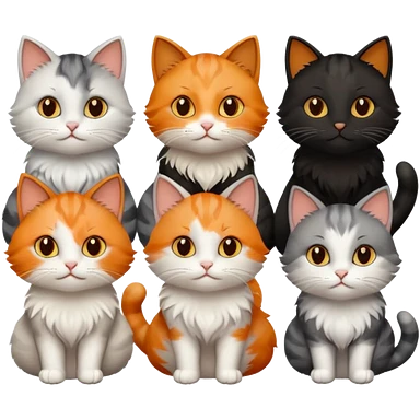 6 cats with different natural coloured coats emoji | AI Emoji Generator