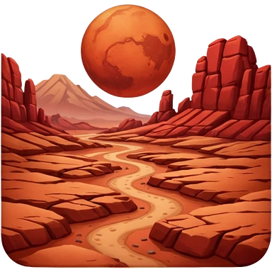 crystal mars planet, surface covered in glowing crystals mountains and dust emoji