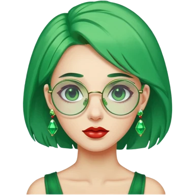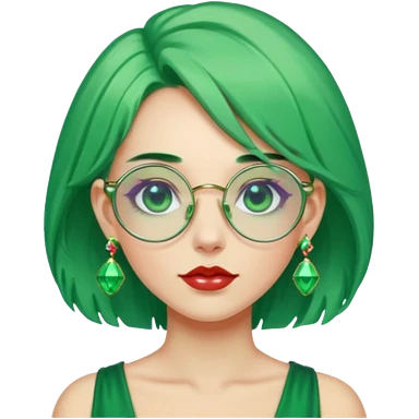 gem lover woman with gem accessories excessive amount gem glassess very big gem earrings green hair emoji