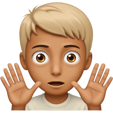 Boy, blonde hair with two hands stomach up saying 67 emoji
