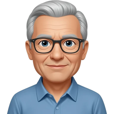 67 grey shoulder length hair tucked behind the ears with a fringe and glasses and wrinkles emoji