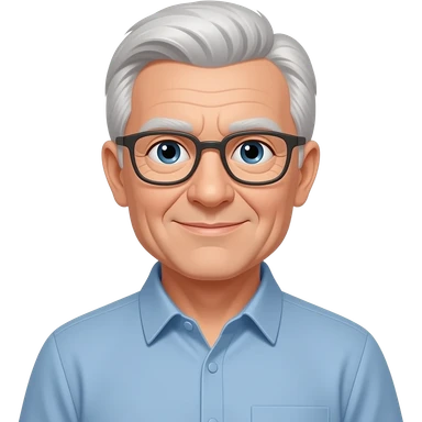 67 grey shoulder length hair tucked behind the ears with a fringe and glasses and wrinkles emoji