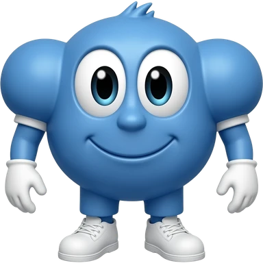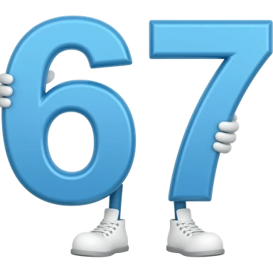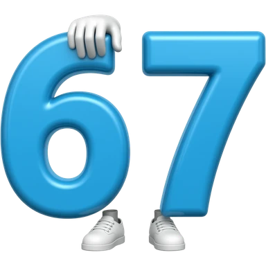 Blue 67 character number wearing white gloves and white shoes and it haves eyes emoji