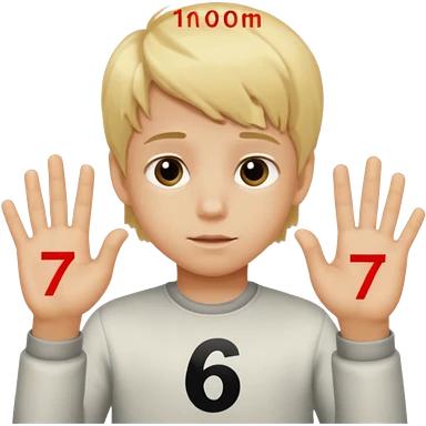 Blonde kid with numbers 6 and 7 on his hands emoji