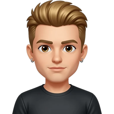 8-BitRyan with brown eyes, golden brown faux hawk hair, black metallic t-shirt, earrings emoji
