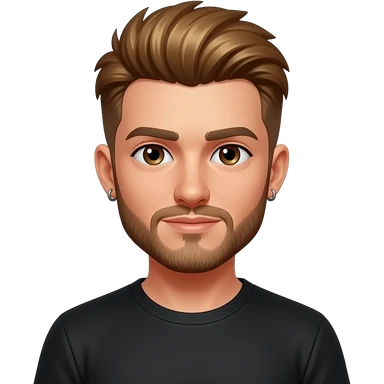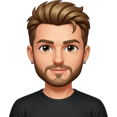 8-BitRyan with brown eyes, golden brown faux hawk hair and short beard, black metallic t-shirt, earrings emoji