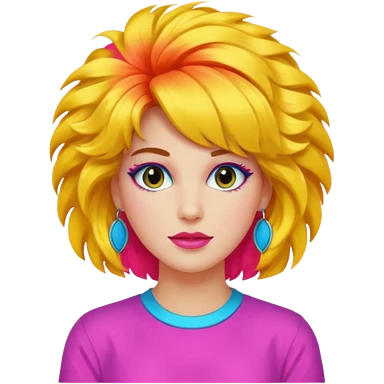 80s girl, long blonde permed hair, 80s clothing, 80s makeup emoji