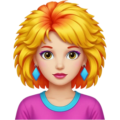 80s girl, big hair, 80s inside out sweatshirt emoji