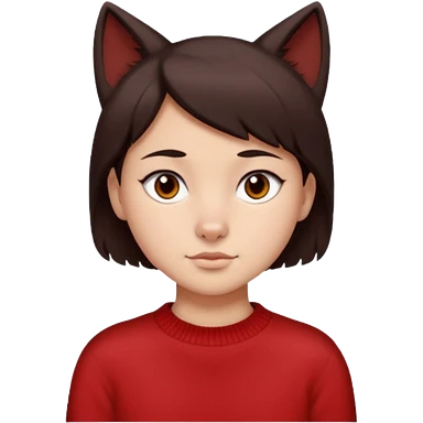 make a girl that has a boyish wolf cut thats right above the shoulders, give her a red sweater and make her face just right chubby but slso not too chubby. ( make it a white background and make the hair dark brown and also the eyes dark brown ) emoji
