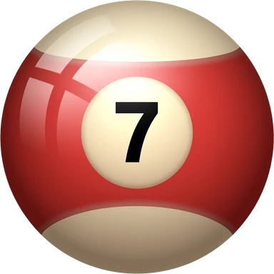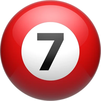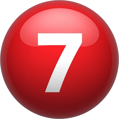 Red ball with no. 7 on it with black ink and white circle around the no. emoji