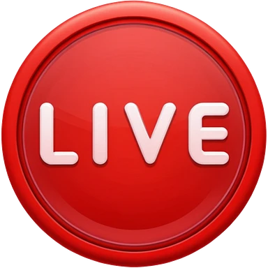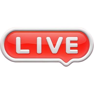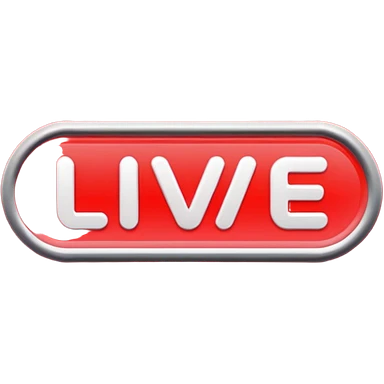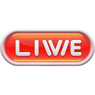 "LIVE" text badge, bold white letters on neon red rounded rectangle background, soft red glow, modern broadcast indicator style, Twitch/YouTube live aesthetic, black background emoji