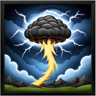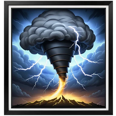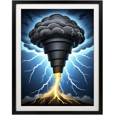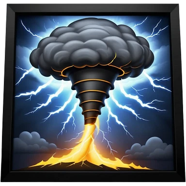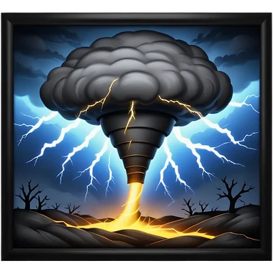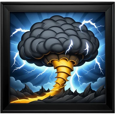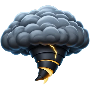 A Discord emoji of a dark, stylized tornado with lightning bolts inside a black circular frame. High contrast, aggressive lines, white background. emoji