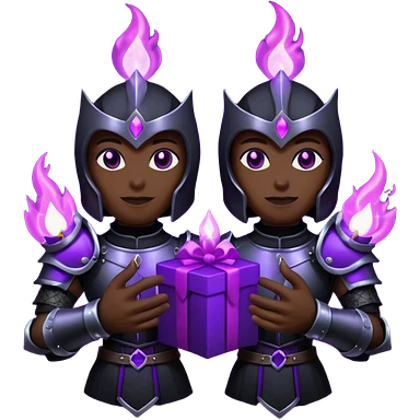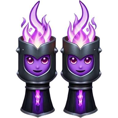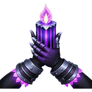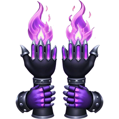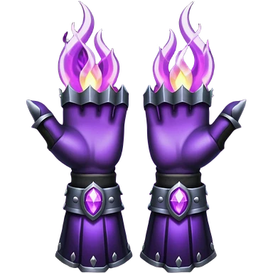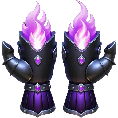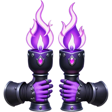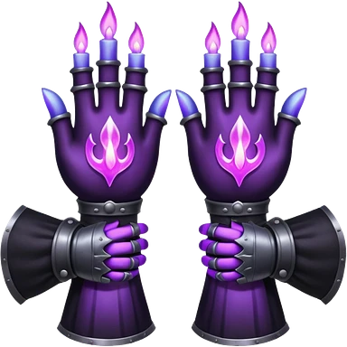 A Discord emoji of a pair of black armored gauntlets holding a flickering violet flame. The hands are positioned as if offering a gift. Dark gothic fantasy, glowing magical effects, high contrast, 2D vector style, white background. emoji