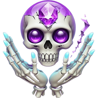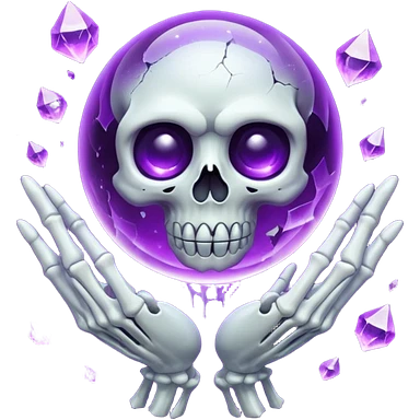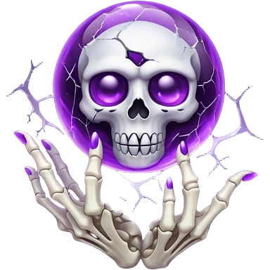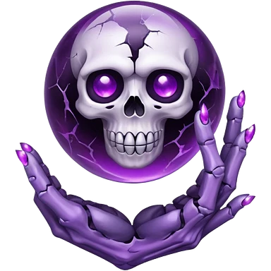 A Discord emoji of a floating, cracked purple crystal orb held by skeletal fingers. Void magic theme, vibrant glow, sharp detail, white background. emoji
