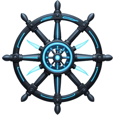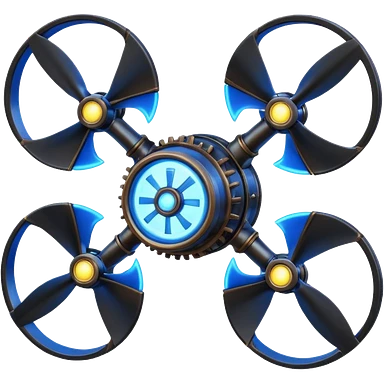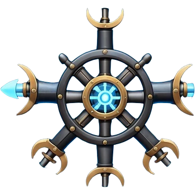 A Discord emoji of a black iron mechanical propeller or anchor with glowing blue energy lines. Steampunk-gothic fusion, high visibility, white background. emoji