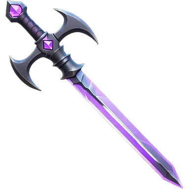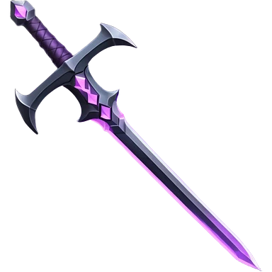 A Discord emoji of a sharpened obsidian blade with a glowing purple rune on the hilt. High-end fantasy style, sleek, metallic black, white background. emoji