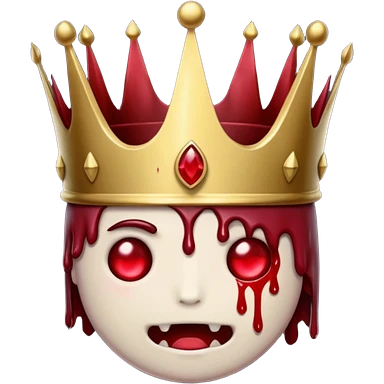 A Discord emoji of a jagged iron crown with a single large ruby dripping blood. Dark Lord aesthetic, bold red and black colors, white background. emoji