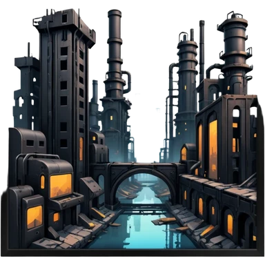 an apocalyptic backdrop of a city in ruins in the style of cyber punk and steam punk ascetics emoji