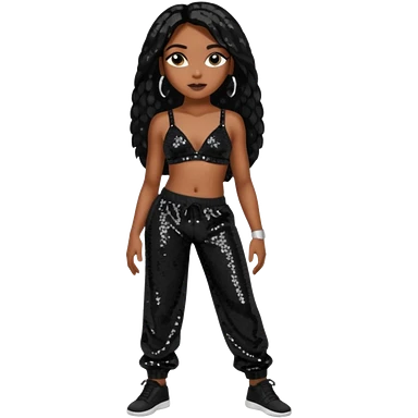 Aaliyah with black sequin bra, black sequin baggy pants emoji