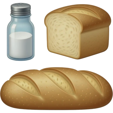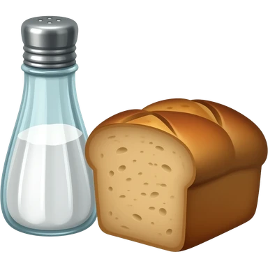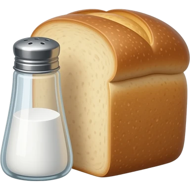 a bottle of salt (salt shaker) and a loaf of peasant bread - still life composition vintage emoji