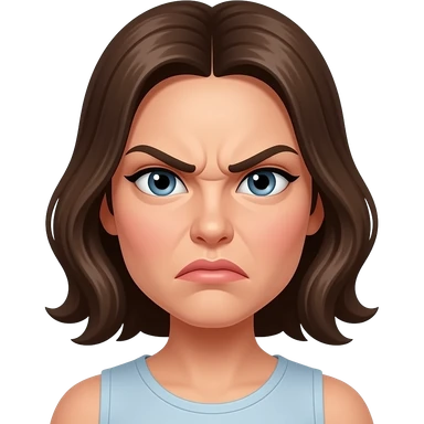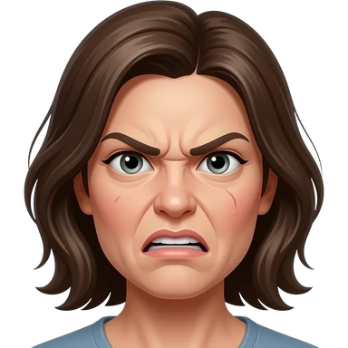 A woman's flushed and angry face, beauty model emoji