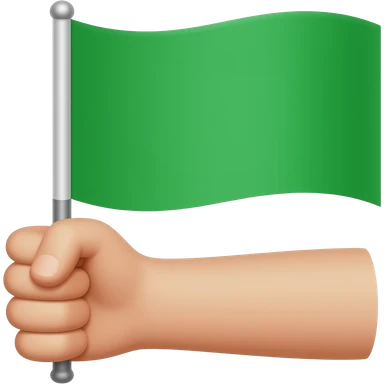 A hand holding a green flag emoji