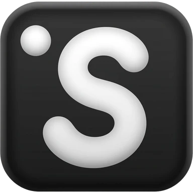 A simple white abstract symbol on a black background, resembling a curved flowing ‘S’ shape with a rounded tail and a small circle floating above the left side, minimalist, smooth edges, modern emoji style, high contrast. emoji