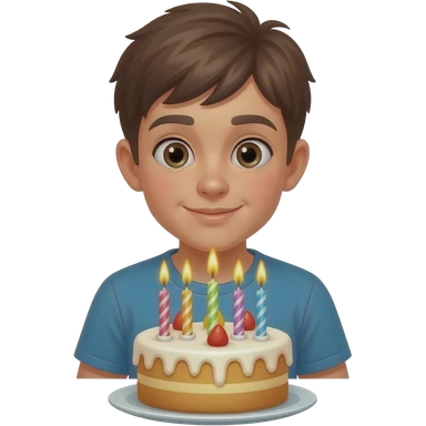 a boy with a birthday cake emoji