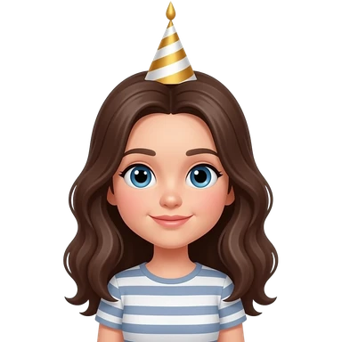 a girl wearing a birthday cap with a cake in front emoji