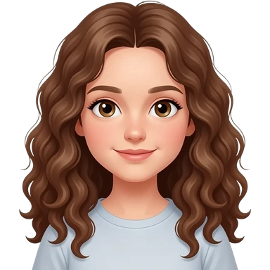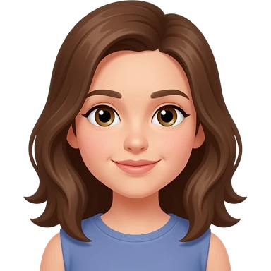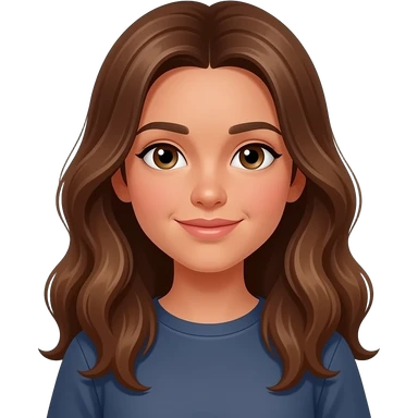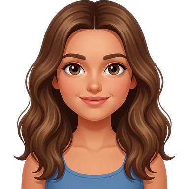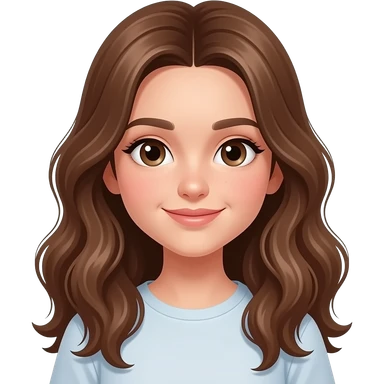 a 13 year old girl long pretty wavy brown hair light brown highlights tan skin white tight shirt emoji | AI Emoji Generator