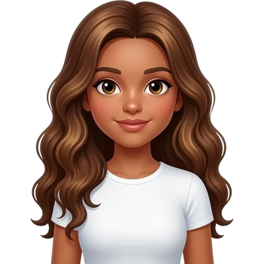 a 13 year old girl long pretty wavy brown hair light brown highlights dark skin white tight shirt emoji