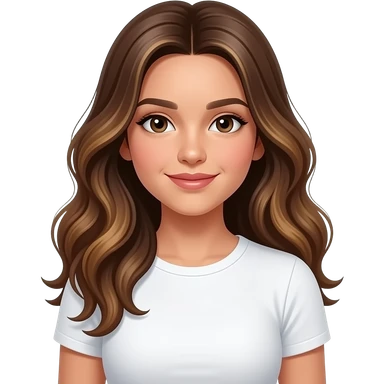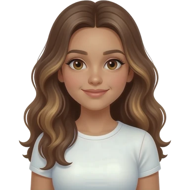 a 13 year old girl long pretty wavy brown hair light brown highlights tan skin white tight shirt emoji
