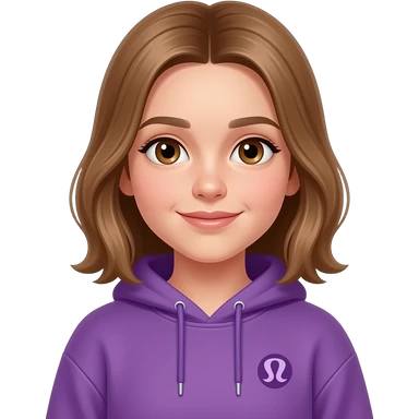 a 13 year old girl with light brown hair brown eyes Lululemon purple sweatshirt emoji
