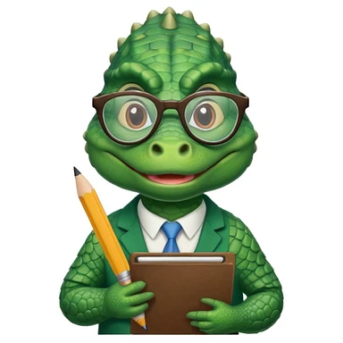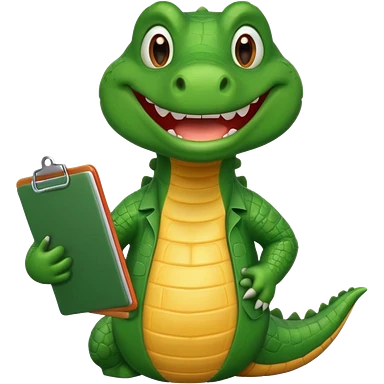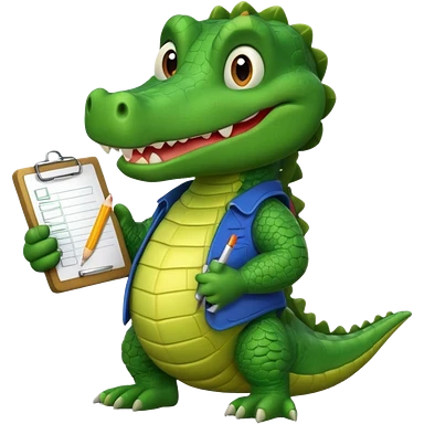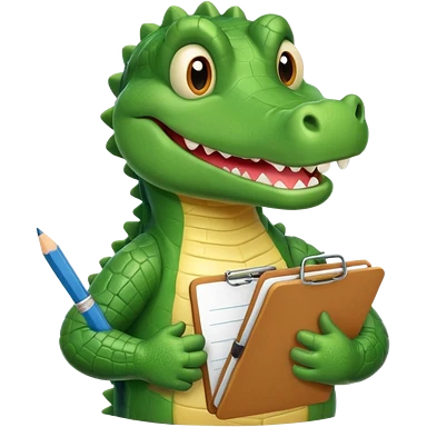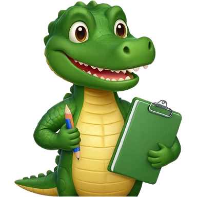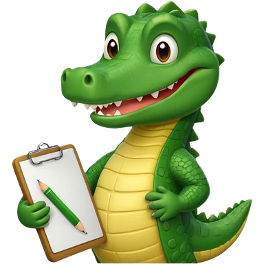 A cartoon gator with a clipboard and a pencil against a white background emoji