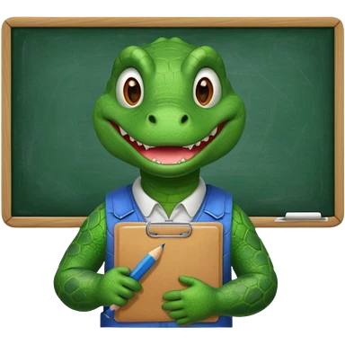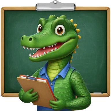 A 1960s style image of a gator with a clipboard and a pencil in front of a chalkboard emoji | AI Emoji Generator