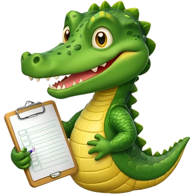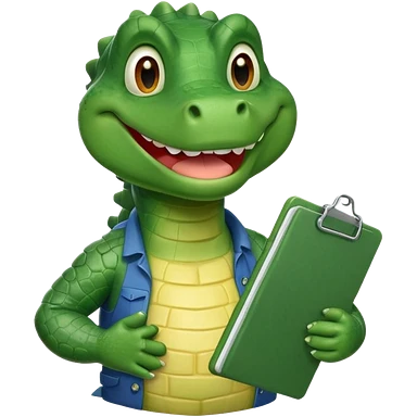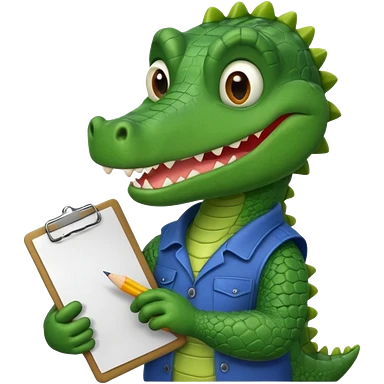 A gator with a serious face holding a clipboard and a pencil, offwhite background emoji