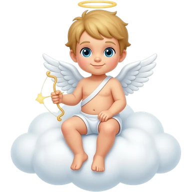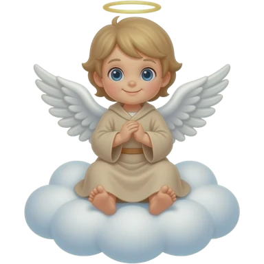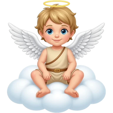 A little angel Cupid in beige with white wings sits on a cloud emoji