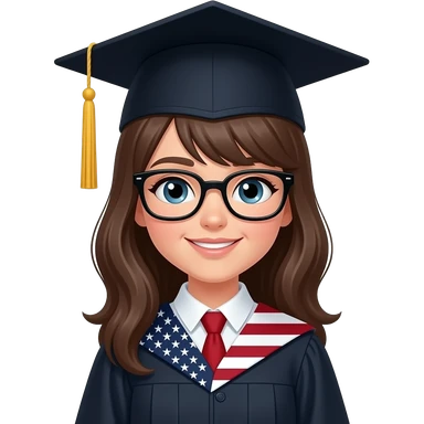 a girl with glasses and a graduate's hat and robes with the US flag emoji