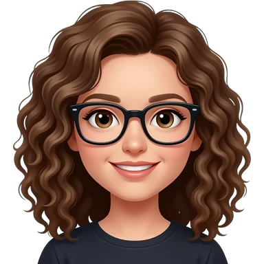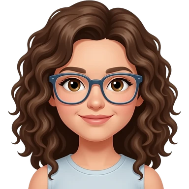 a white girl with curly brown hair and wayferer glasses with black frame emoji