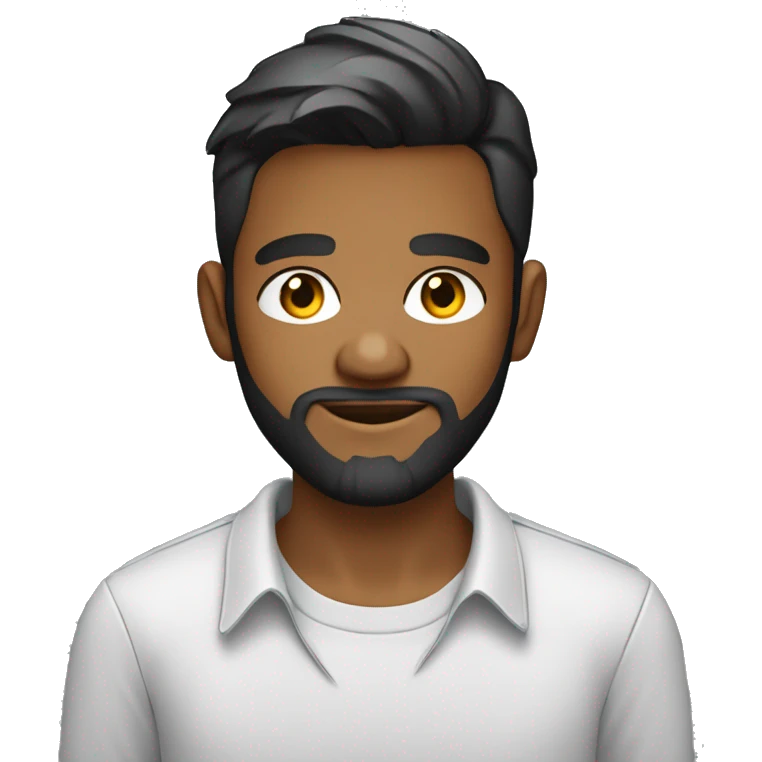 A 20 years old boy with beard with name Auon on his shirt working as a web devloper emoji | AI Emoji Generator