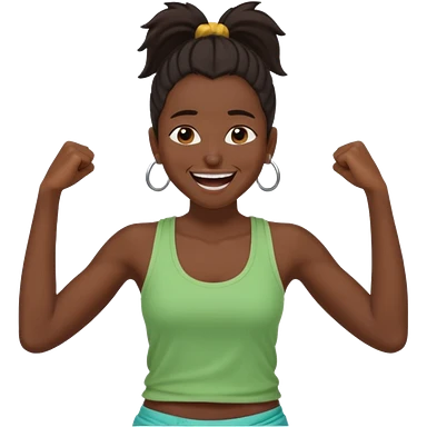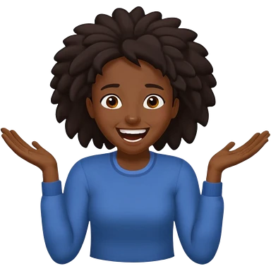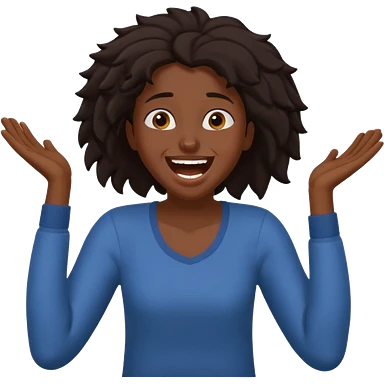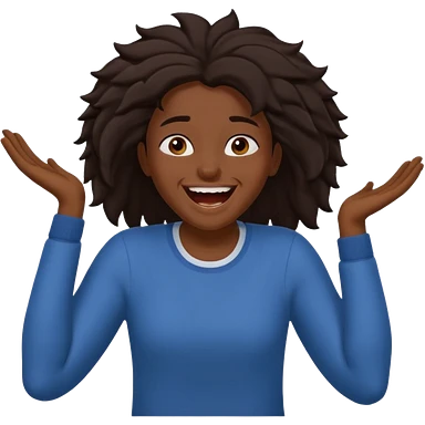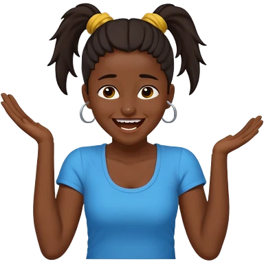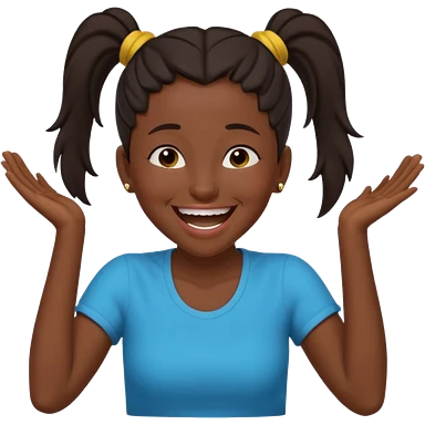 Baiza Ethiopian, dark hair Oldest but immature, no filter, funny Pose: laughing wildly, arms flailing age 21, hair in pony tail emoji