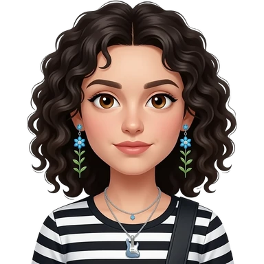 A 21 year old girl with short dark brown hair and brown eyes emoji