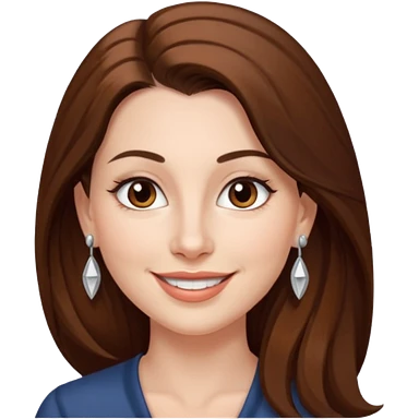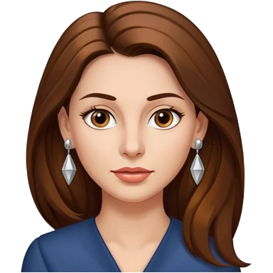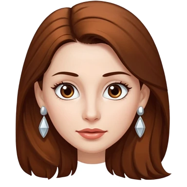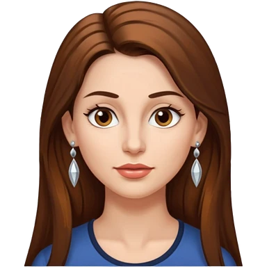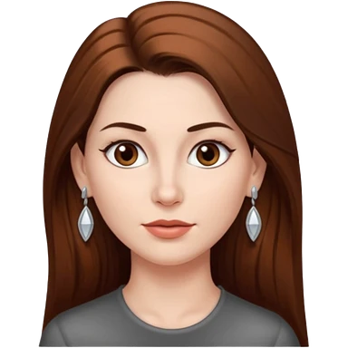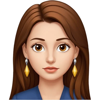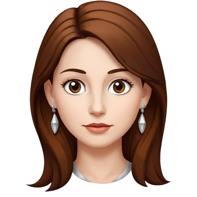 Head of a 35-year-old woman, fair skin, long brown hair combed to one side and silver earrings, small lips and pointed nose, brown eyes. emoji
