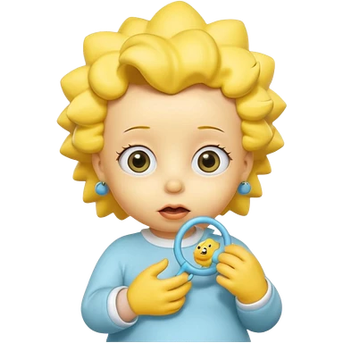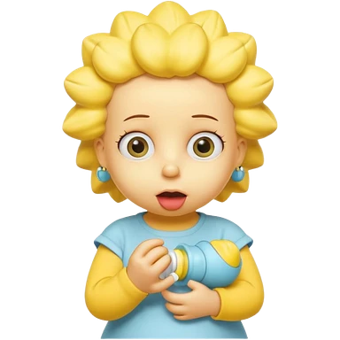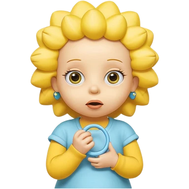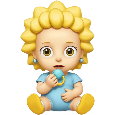 A 3D cartoon baby character fully yellow skin, styled like Maggie Simpson, with pacifier, yellow onesie, big eyes, smooth shading, Memoji-style rendering, consistent with other yellow Simpsons characters. emoji | AI Emoji Generator