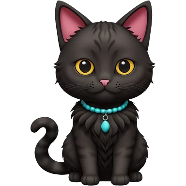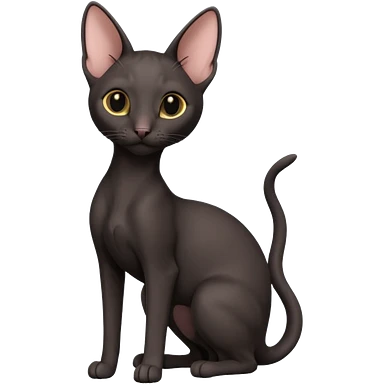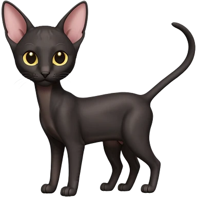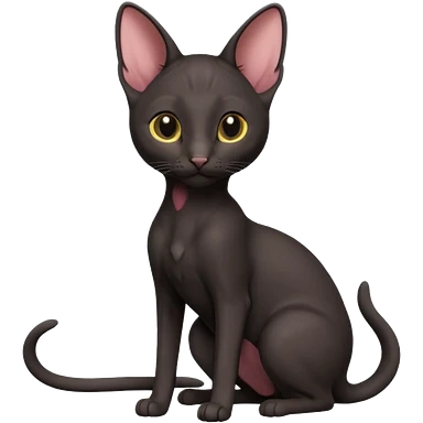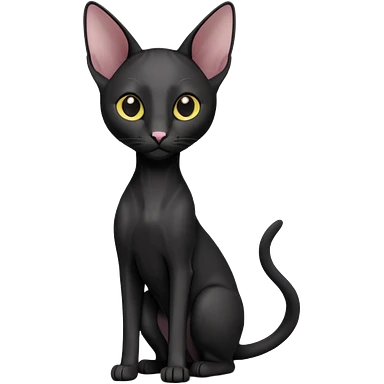 A 3D cartoon black Oriental Shorthair cat with bulky body, tall ears, reflective fur, dark cinematic background, Memoji-style. full body or half body. emoji | AI Emoji Generator