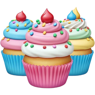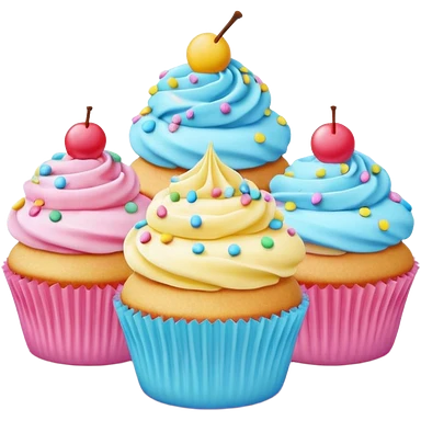 A 3D cartoon poster design advertising cupcakes, with bright pastel colors, clean text and borders, soft background, realistic Memoji-style layout. emoji