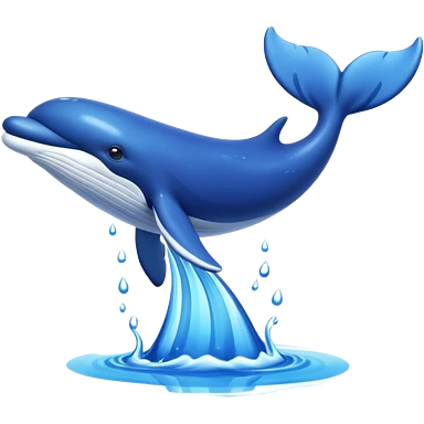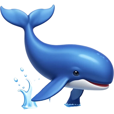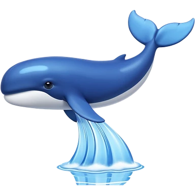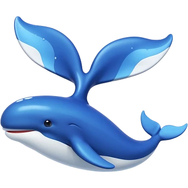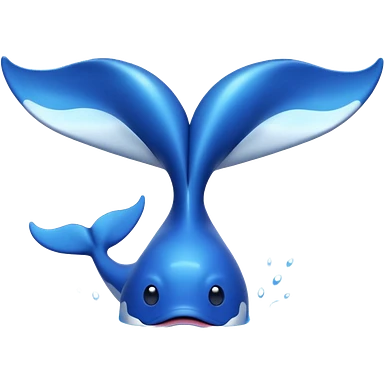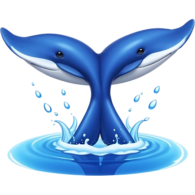 A 3D cartoon whale tail rising from the water, smooth surface reflection, ocean background, Memoji-style. emoji