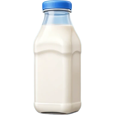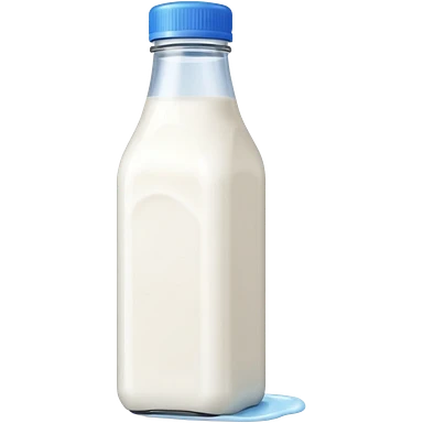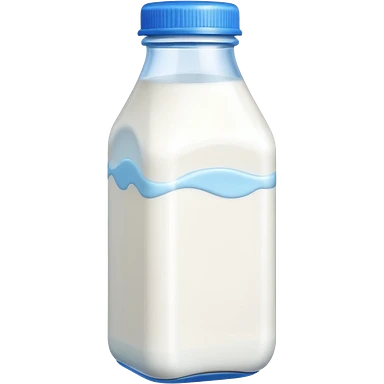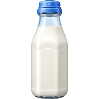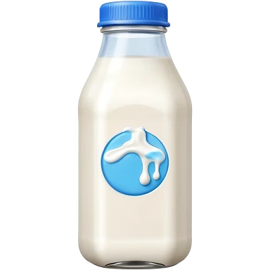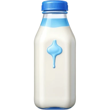A 3D cartoon bottle of milk with white liquid, blue cap, clean reflections, Memoji-style. emoji